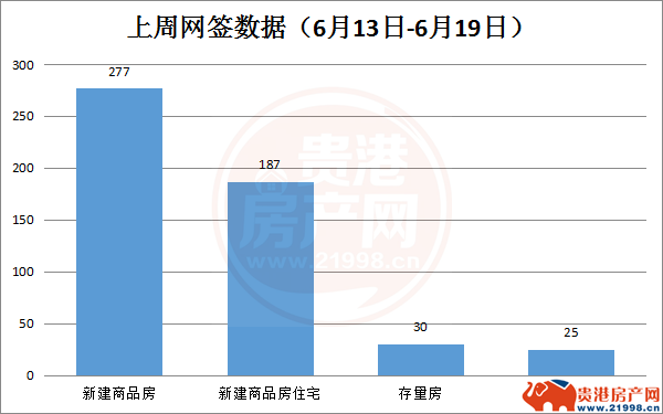 上周贵港市新建商品房共备案277套,环比下降34.36%
